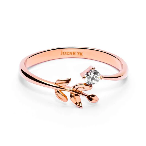 Details: Cincin dengan detail hiasan daun dan batu zirconia kecil